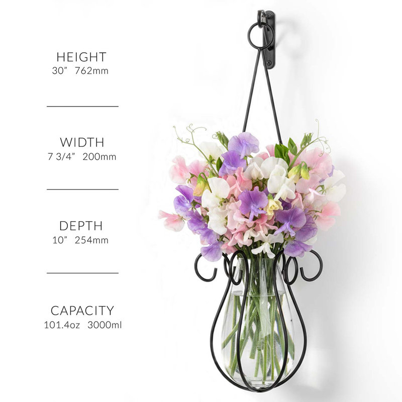 10 inch Hanging Basket Drop Vase with Hook, 101 oz Capacity