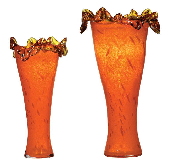 Decorate your living space room with this elegant and luxurious glass decor. Featuring a unique design, this decorative 2 piece vase set will add a special touch to your living space. Display it along your existing home decor to create a more cohesive look. This item is on a table or console to accentuate your home.
