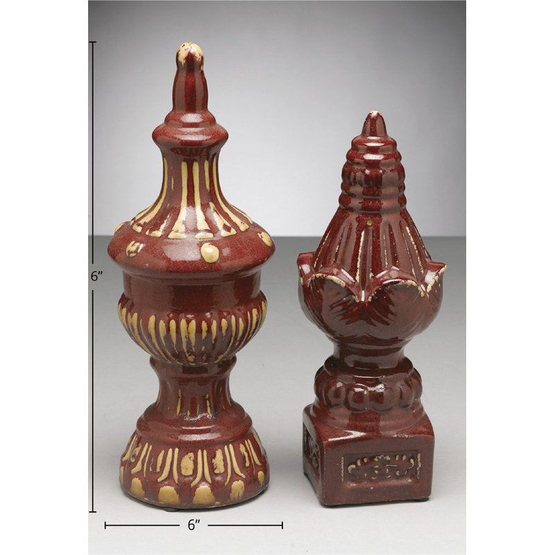 Trust the 2-piece Urn Set to complete your display cabinet. Place this atop your desks or shelves for decor. It features two finials of different sizes brimming with antique and vintage beauty. This is perfect for people who are collecting decorative pieces of different designs.