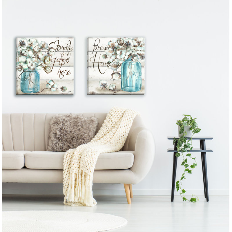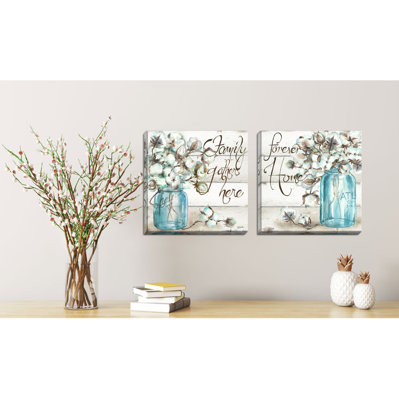 Are bare walls getting the better of you? Wall art tailored to your home’s style – like this piece, for example – makes brightening up a stuffy study or dreary den a breeze. This set of two prints showcases a watercolor of cotton blossoms set in two blue jars, along with text reinforcing family gatherings. these pieces are a great option for rustic-inspired styles whether hung together or separately. Wall mounting hardware is included, so these pieces are ready to hang right out of the box.
