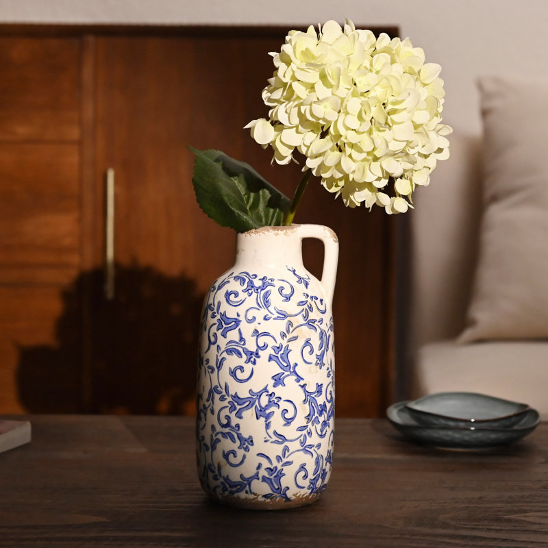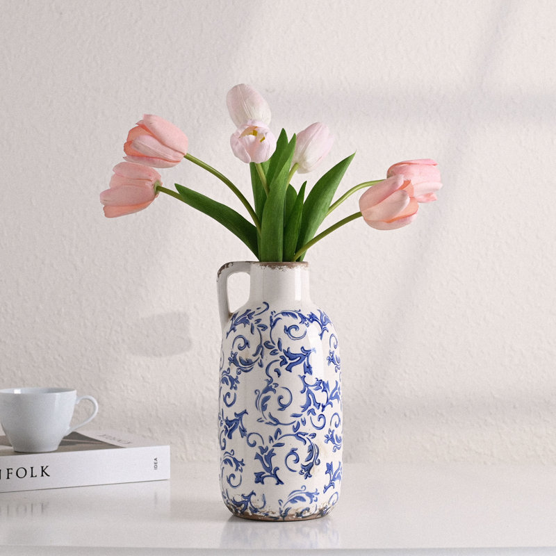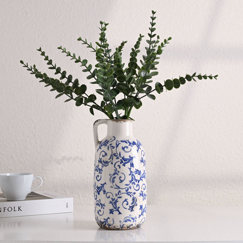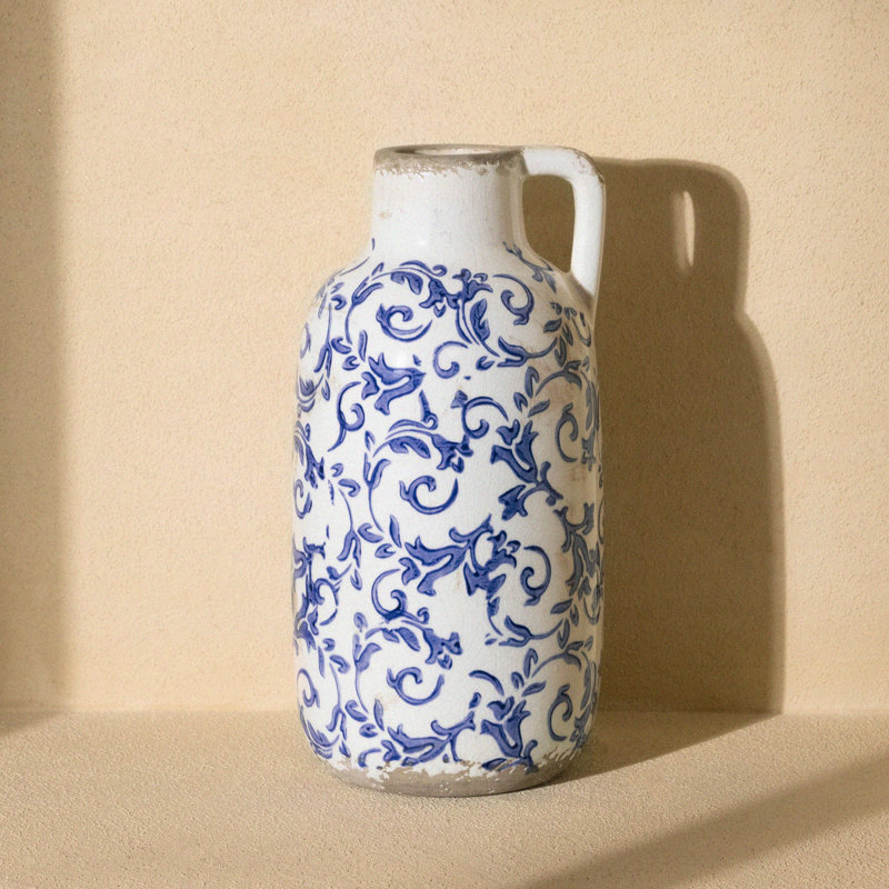 9.6 Inch Rustic Blue And White Ceramic Vase