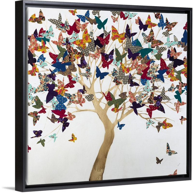 This art print features a colorful tree of butterflies that freshens up the look of your walls in the living room, entryway, or bedroom. It’s printed on canvas and placed on a beveled solid wood stret…. Read More.