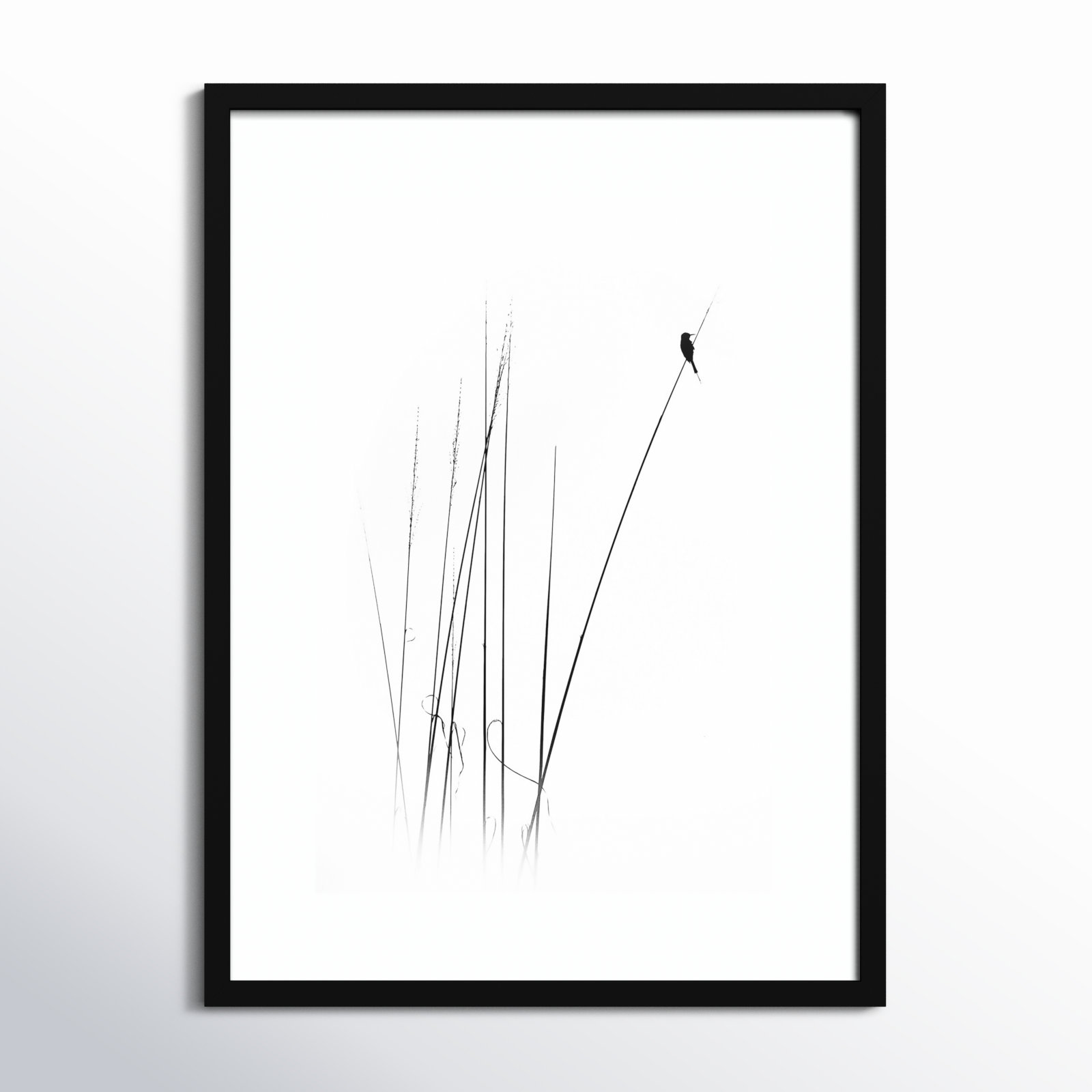 A Sabbatical. Inspired by Sumi-e ink painting techniques, this print depicts a lone bird atop a tall reed with economical but expressive brushstrokes against a stark expanse of white space. It’s gicle…. Read More.