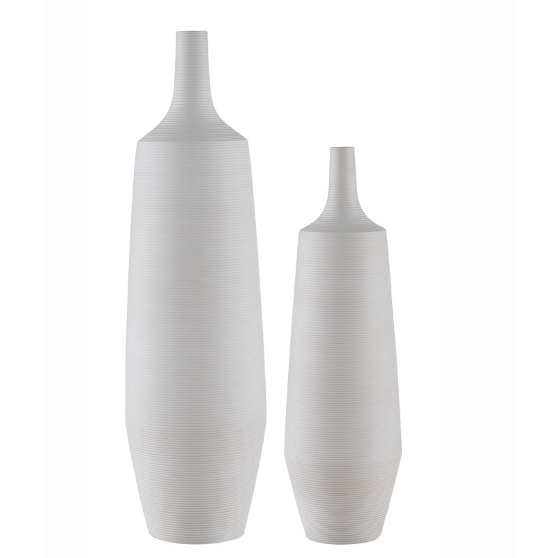 This set of vases showcases a minimal design that really makes your fresh or faux flowers pop. Arriving in a set of two, they’re crafted from ceramic with a crisp white glossy finish that complements your coastal farmhouse space. Each vase features a jar-inspired silhouette that tapers at the bottom for a textured look, while the narrow mouth adds an extra layer of dimension. Plus, they come in a small (21″ tall) and large (26.5″) design, so they’re great for placing together on a console table in your entryway, on top of your fireplace mantel, or adorning your coffee table.