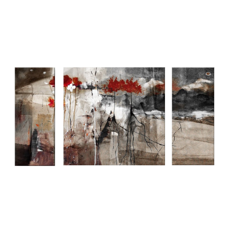 Create a cohesive look in your living room or bedroom with this 3-piece set of botanical printed paintings. Featuring an abstract composition, it shows off three rectangular panels with black, gray, b…. Read More.