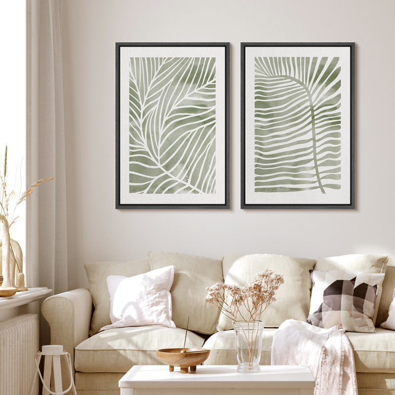 Be the first to review “Abstract Botanical Sage Green Tropical Abstract Palm Tree Leaves Modern Art Simple Framed Canvas 2 Piece Print Wall Art” Cancel reply