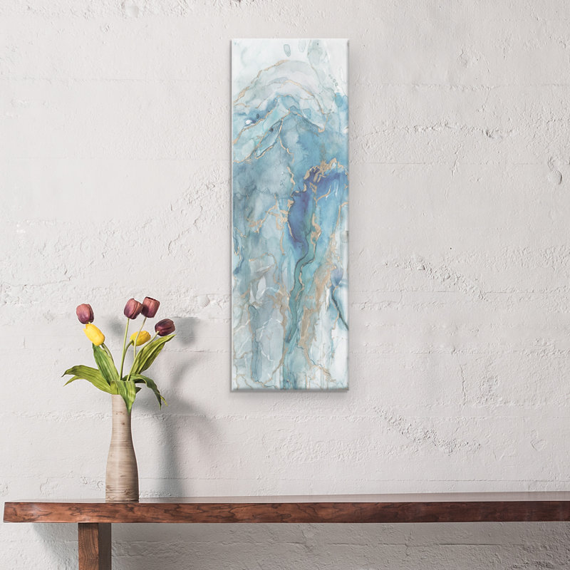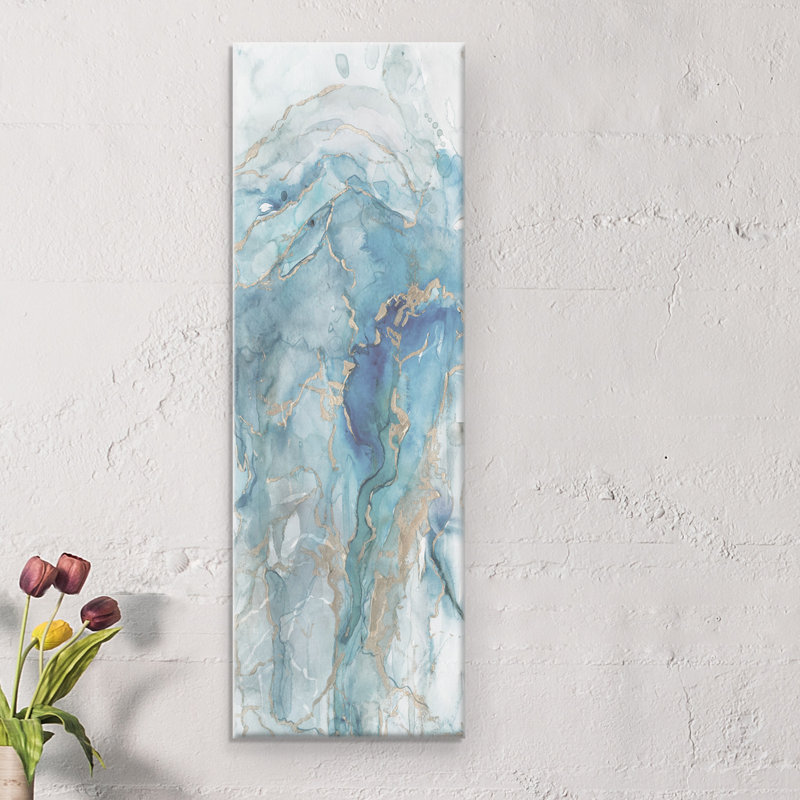 Add some unique, stylish, and abstract artwork to your home with this stunning canvas print. This gorgeous watercolor print contains variations of the color blue swimming across the canvas with gold highlights to create a truly spectacular piece of artwork for your home decor needs. Abstract in composition, this print will blend in with your modern design sensibility. Perfect for your living room, bedroom, bathroom, or as a focal point at the end of a long hallway, it is guaranteed to pull focus and captivate attention. Made with superior printing technology, you get high-quality wrapped canvas print with exceptional detail at an affordable price. Plus with full-bleed printing, there’s no need to worry about framing as your new artwork comes ready to hang.