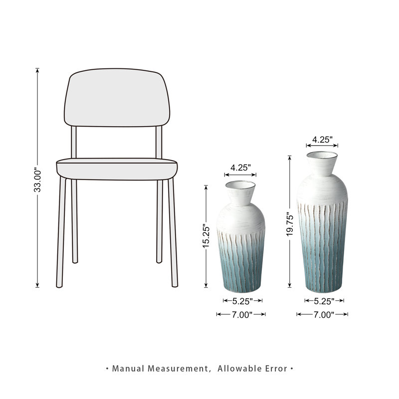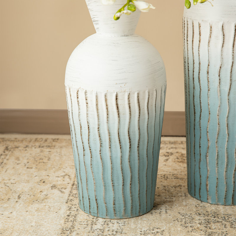 Crafted from premium metallic materials, featuring a classic shape complemented by the Ombre design of distressed blue and white with sliver accents. The surface is adorned with a water ripple texture, and the bottle neck is accentuated with silver, lending a unique modern design aesthetic.Designed for durability, it offers robust stability and a balanced weight to prevent tipping. It serves as an ideal showcase for a variety of blooms, greenery, or any decorative accents you prefer. These versatile vases blend seamlessly into a multitude of settings, from homes and offices to hotels and restaurants.
