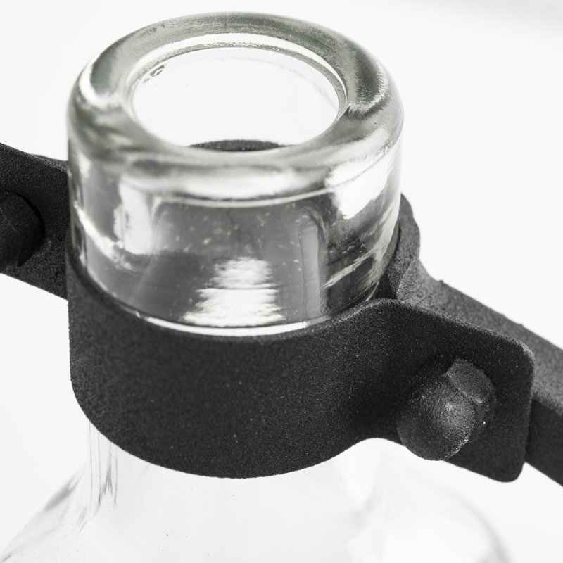 - This unique bottle within a metal circle is a piece of sculptural art unto itself even empty.