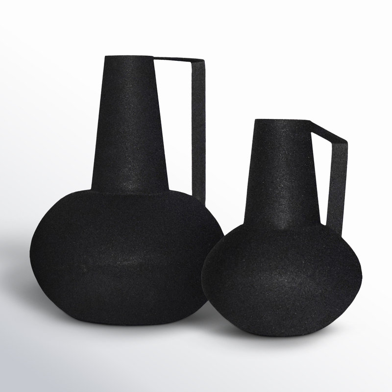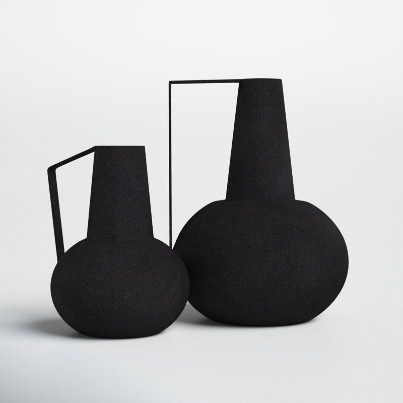 Airy and angular, this 2-piece set of table vases reminds us of the clean lines of vintage vases. Each piece is made from powder-coated metal and has a classic pitcher silhouette that gets a modern tr…. Read More.