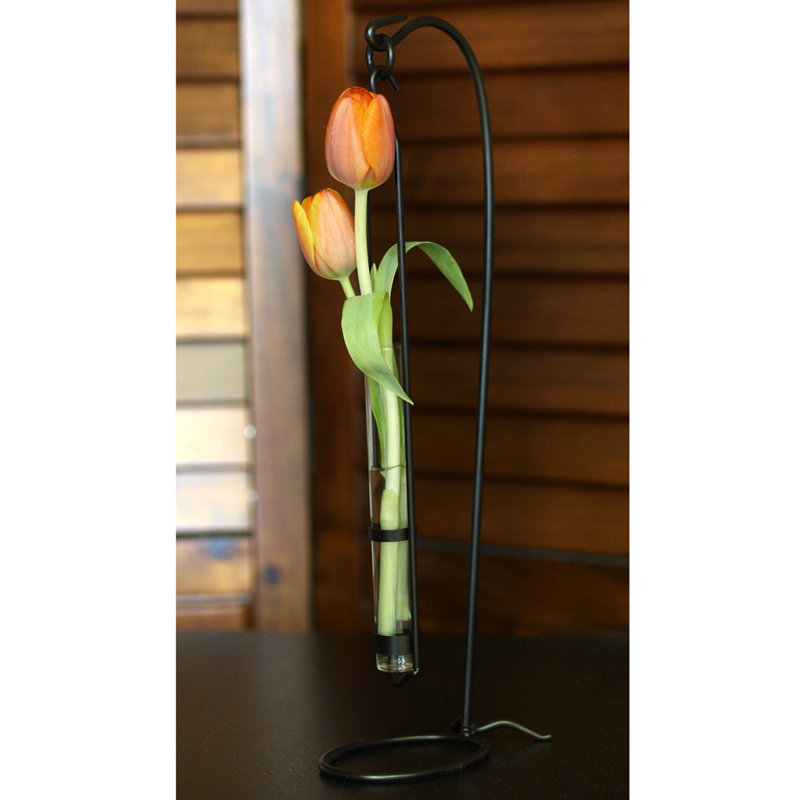 Enhance the decor in your home with this extraordinary vase design. Configured with a beautiful metal stand, this tube vase hangs freely allowing movement of the vase and flowers. Exquisite for any ro…. Read More.