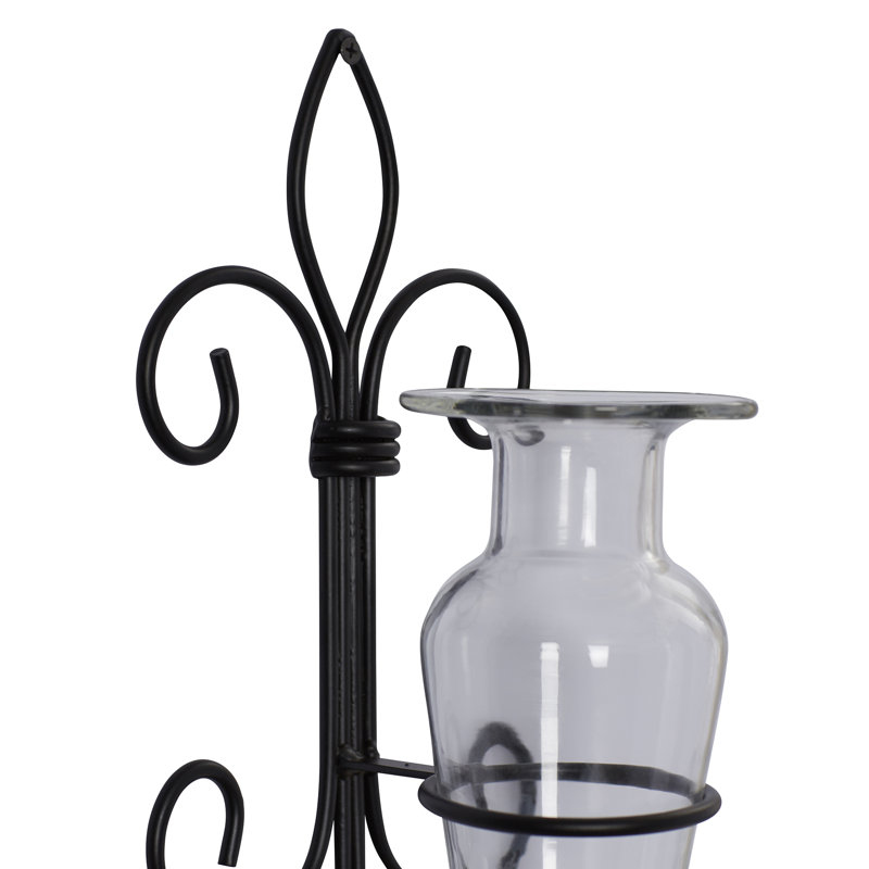 This 16″ Fleur de Lis Sconce is made of iron and recycled glass. Whether used for fresh or faux flowers it is a beautiful accent for any room or column This stunning and timeless piece will turn heads in any room or outdoor setting. Fill the recycled glass vase with fresh fragrant blooms and bask in the beauty of the Fleur de Lis Sconce. A perfect way to bring the outdoors in. The timeless elegance of the Fleur de Lis Sconce will elevate your home’s decor with its handcrafted iron and recycled glass construction. Enjoy a handpicked flower arrangement in the vase for a show-stopping centerpiece that will last for years to come.