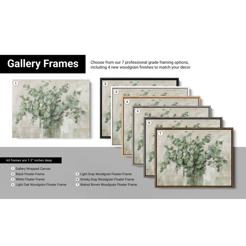 - Luxurious Frame Finishes”Choose from 6 stunning wall art gallery floater frames, including black, white, light gray, dark gray, walnut, white oak (or as wrapped canvas)