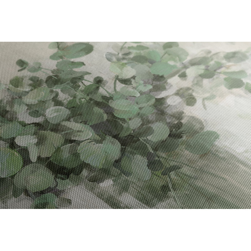 This painting print, titled “Scented Eucalyptus Neutral” by artist Danhui Nai, brings some of nature’s beauty to your home. The piece showcases a watercolor rendition of eucalyptus leaves in soft shades of green and gray. Printed on high-quality cotton canvas, this landscape-oriented artwork adds a serene, calming vibe to any room. The wrapped canvas format ensures a clean and seamless look, making it an elegant addition to your living space or bedroom.