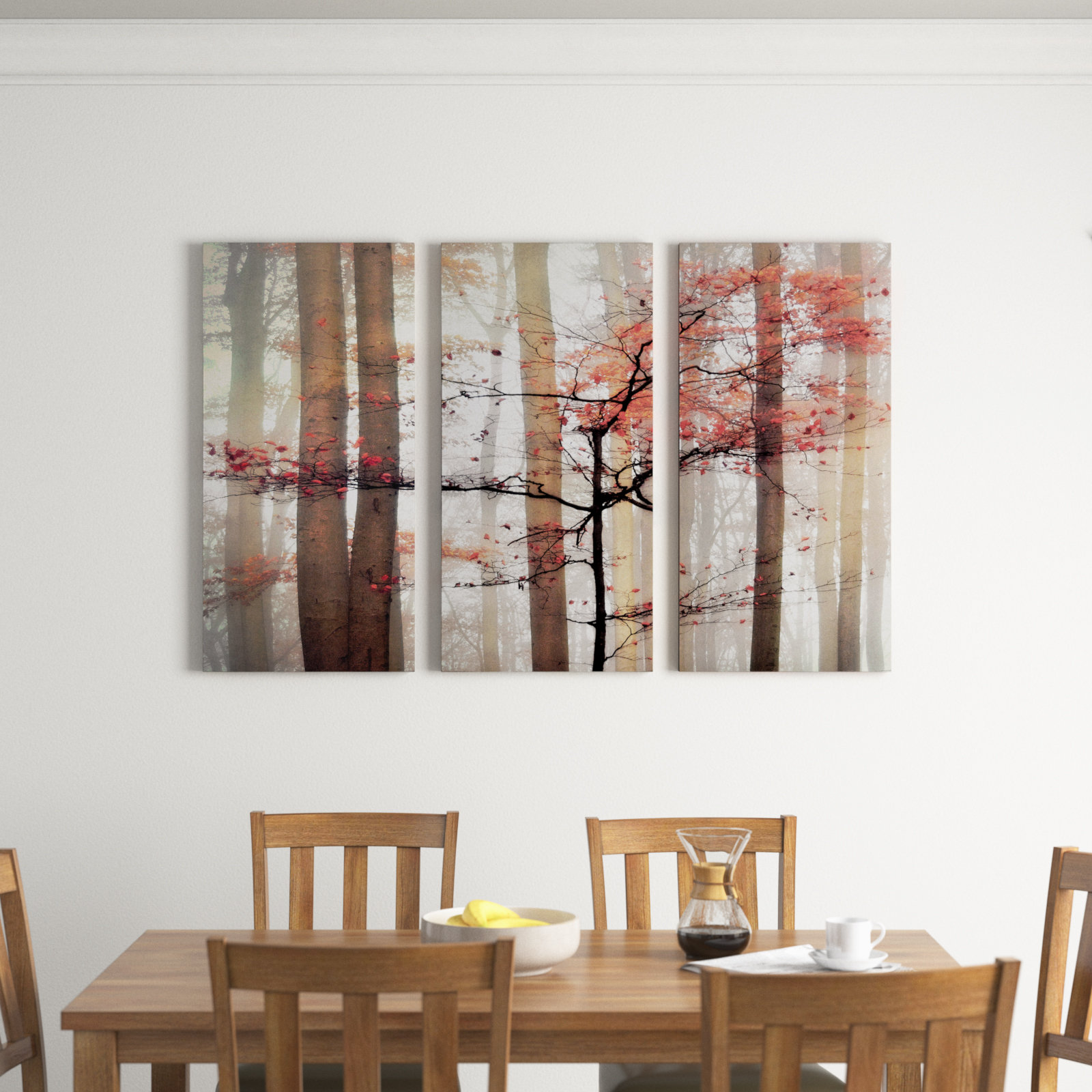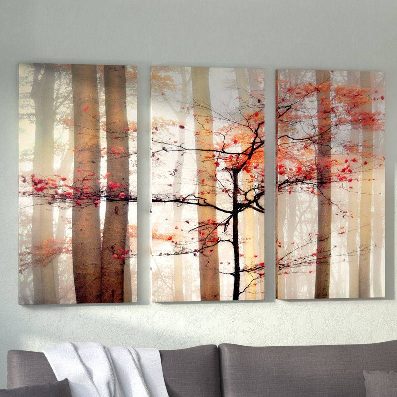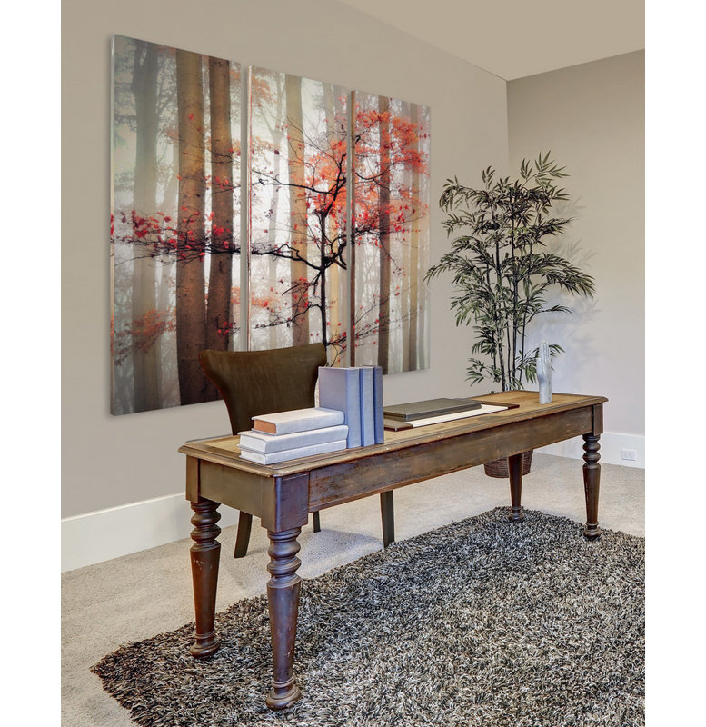 This 3-piece art print set adds a fresh, welcoming feel to your hallway or living room with its earthy color scheme. This recreation of the artwork titled, “Orange Awakening,” is printed in the USA on giclee canvas. When the pieces are arranged side by side, they showcase a landscape view of a forest on a foggy autumn day. We love how this artwork brings a natural element to your home and fits right in with traditional and rustic decor styles. Plus, each piece comes with a hook on the back for easy hanging.