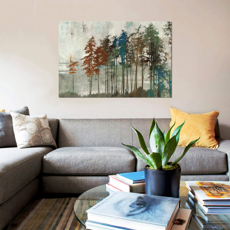 This painting print on canvas puts a rustic twist on a typical landscape. Originally a piece titled, “Aspen,” it’s a reproduction printed with premium inks in a warm color palette of blue, brown, and green. The image features a wooded island surrounded by mountains and tall trees all lined up in a row for a natural look. We love that this nature-themed print uses UV-resistant inks, so it’s ideal for placing in rooms with lots of sun. Plus, this wall art comes with mounting hardware, so it’s ready to hang and inspire right out of the box.