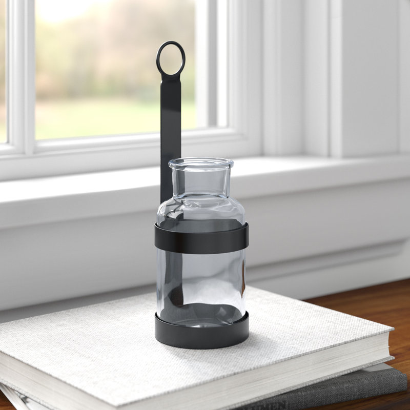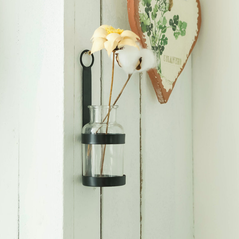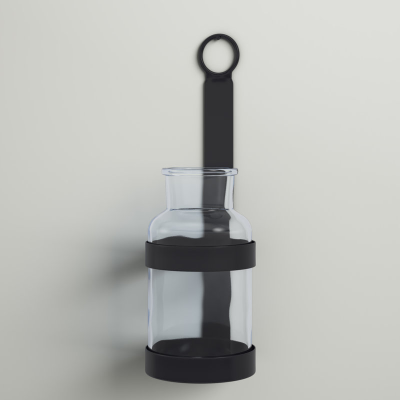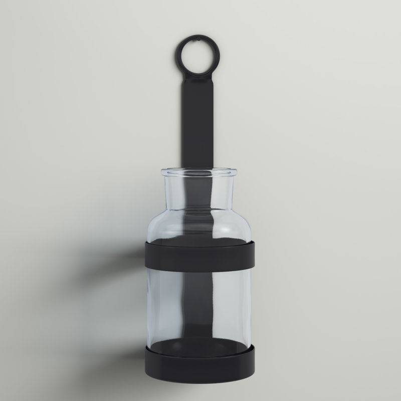 This wall-mounted vase brings a classic, vintage-inspired accent to any corner. It’s made from clear glass with a rounded bottle shape, and it sits within a black metal vase that mounts directly to th…. Read More.