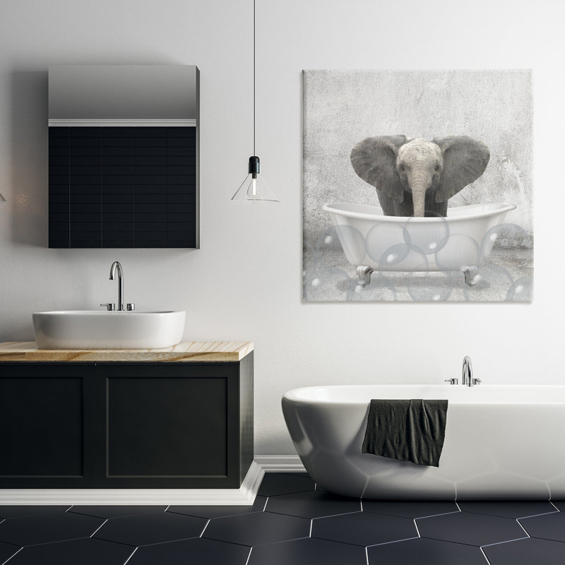 Baby Elephant Bath Time Cute Animal – Graphic Art Print