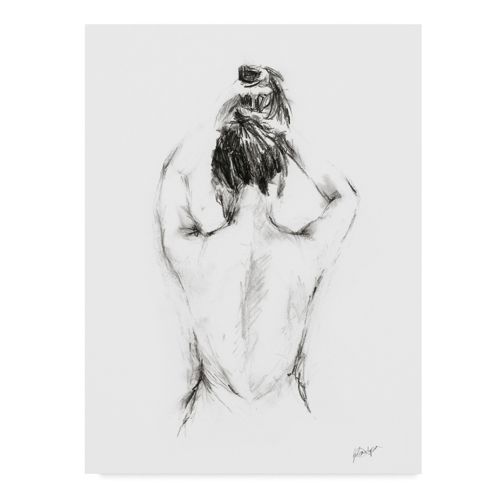 - This ready-to-hang, gallery-wrapped art piece features a figure drawing of a woman grabbing her hair.