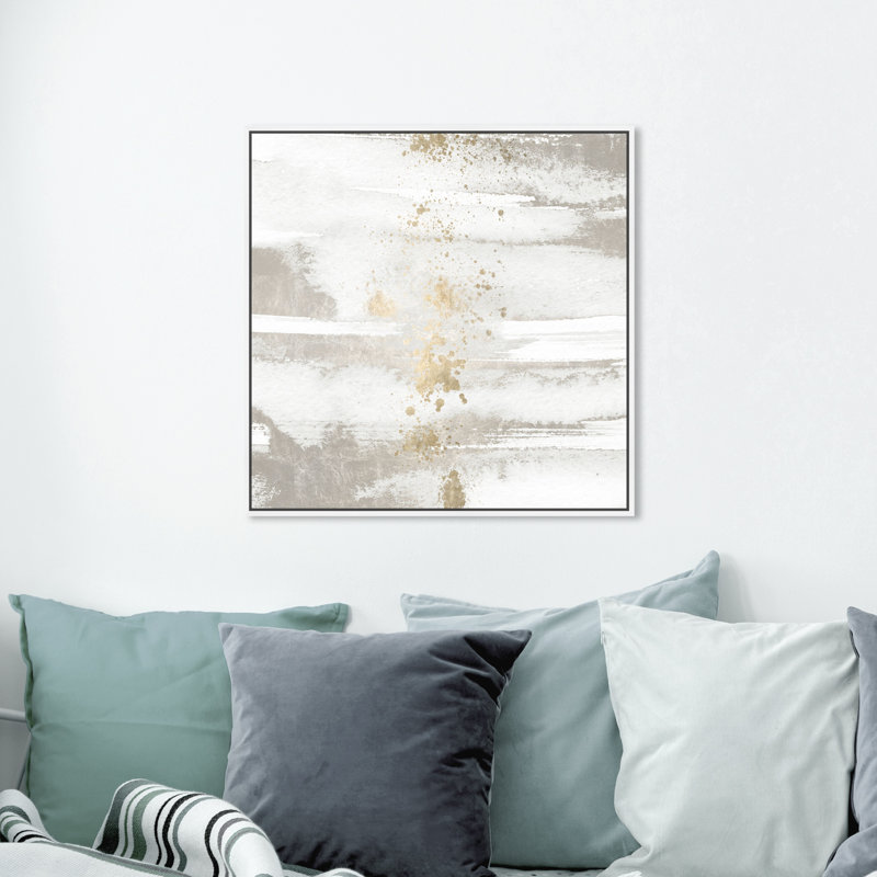 Hang a modern look on your walls with this chic graphic art print. Its abstract designs feature sun- and rain-inspired patterns with white and gold hues that freshen up the look in your living room or bedroom. This acrylic print is made in the USA on museum-grade canvas, and printed with fade-resistant inks. It features a square silhouette that hangs horizontally or vertically on any wall in your space, and it comes in a variety of sizes to choose from. Plus, we love that this graphic print includes wall-mounting hardware for fuss-free installation.