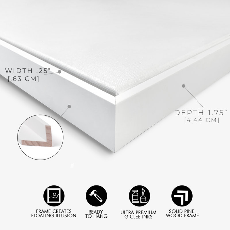 - Our artisans masterfully hand-stretch each canvas over a 1.5″ thick solid wood frame sustainably sourced. Floater frame prints float within a thin frame, which creates the illusion of suspended artwork.