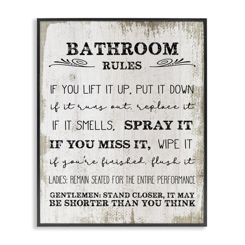 Be the first to review “Bathroom Rules Funny Word Wood Textured Design’ Graphic Art on Canvas” Cancel reply
