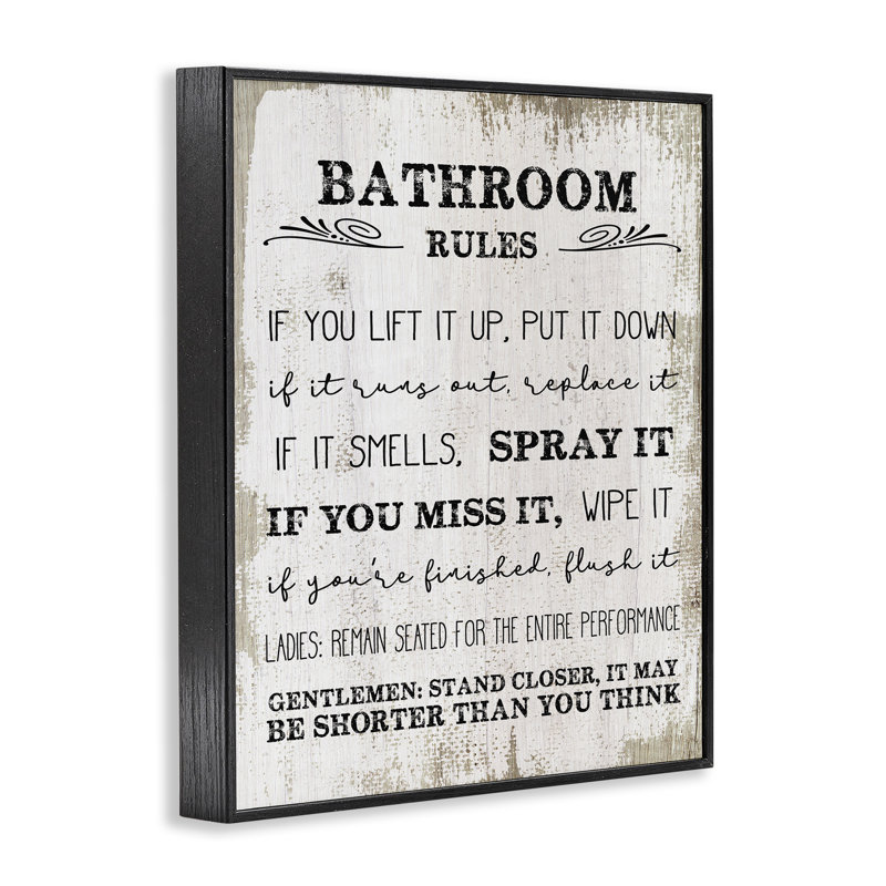 Bathroom Rules Funny Word Wood Textured Design’ Graphic Art on Canvas