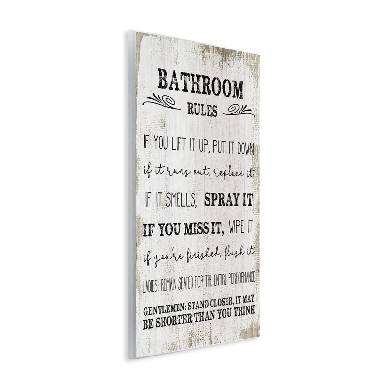 Be the first to review “Bathroom Rules Funny Word Wood Textured Design’ Graphic Art on Canvas” Cancel reply