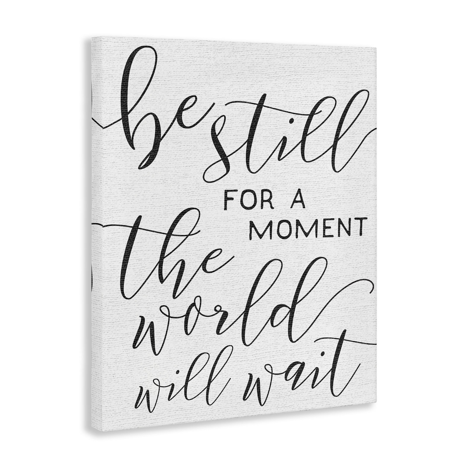 This textual art brings a sense of calm and a gentle reminder to your office, bedroom, or bathroom. Titled “Be still the world will wait,” this art features bold cursive script and capitalized print that reads: “Be still for a moment. The world will wait.” made in the USA, this piece is printed on canvas. We love that this piece has a portrait orientation that lets you round out your wall decor or lean it up against your bookshelf. Plus, it comes with mounting wall hooks for easy installation.