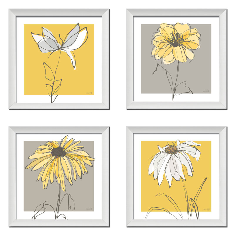 This ‘Beautiful Gray and Yellow Flower’ 4 Piece Framed Graphic Art Print Set makes a great addition to any home. Ready to hang.