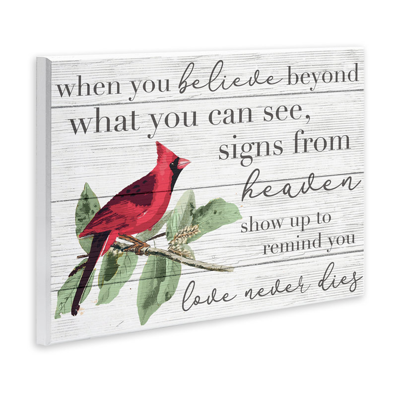 Believe Love Never Dies Inspirational Cardinal Bird Word Design' by Daphne Polselli Graphic Art Print