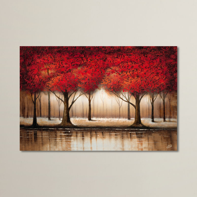 This autumnal wall art set brings a touch of nature to your living room or bedroom. Titled “Parade of Red Trees,” this decor features a landscape painting of slim tree trunks topped with brilliant red…. Read More.