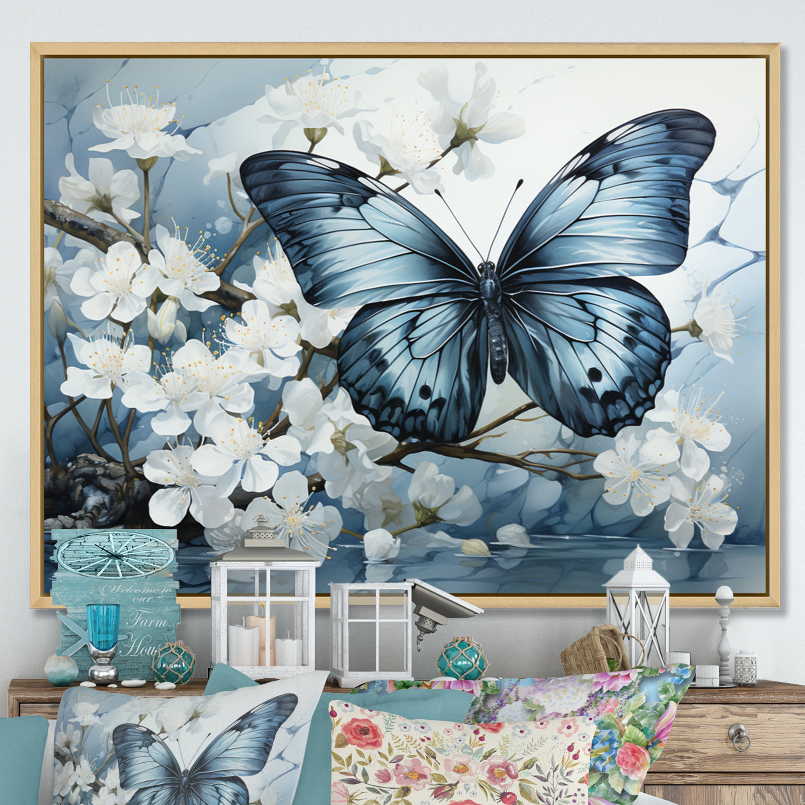 This beautiful “Blue White Butterfly Reflection” wall art is printed on premium quality cotton canvas using the finest fade-resistant ink. We offer a versatile range to cater to your unique aesthetic preferences. The canvas is delicately mounted within a floating frame, creating a striking visual contrast between the artwork and the frame. Timeless and classic, our picture-framed canvas art exudes tradition and refinement. The canvas is enclosed within a carefully selected frame, enhancing the artwork’s beauty and providing a sense of structure to your wall decor. Our collection complements your interior design, ensuring your artwork seamlessly integrates with your home or office decor.
