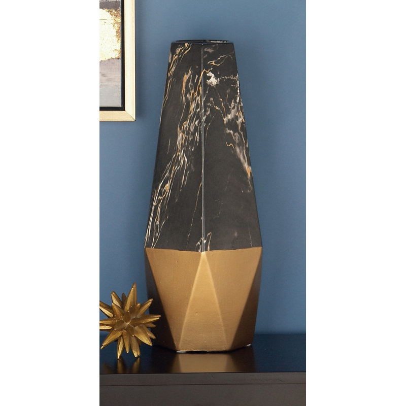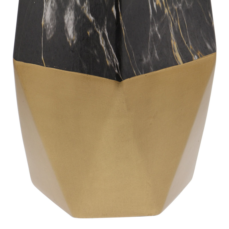 - Durable and watertight vase made from pure stoneware with a hexagon-shaped vase designed with a marbling inspired glazed body & a gold-painted bottom