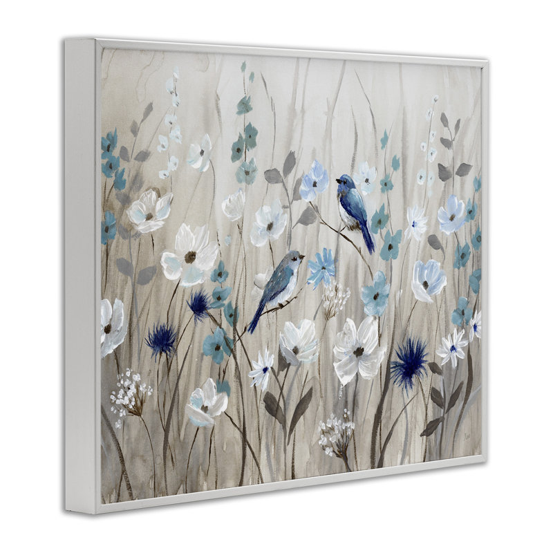 Birds Floral Meadow Blue White Blossoms by Nan – Painting