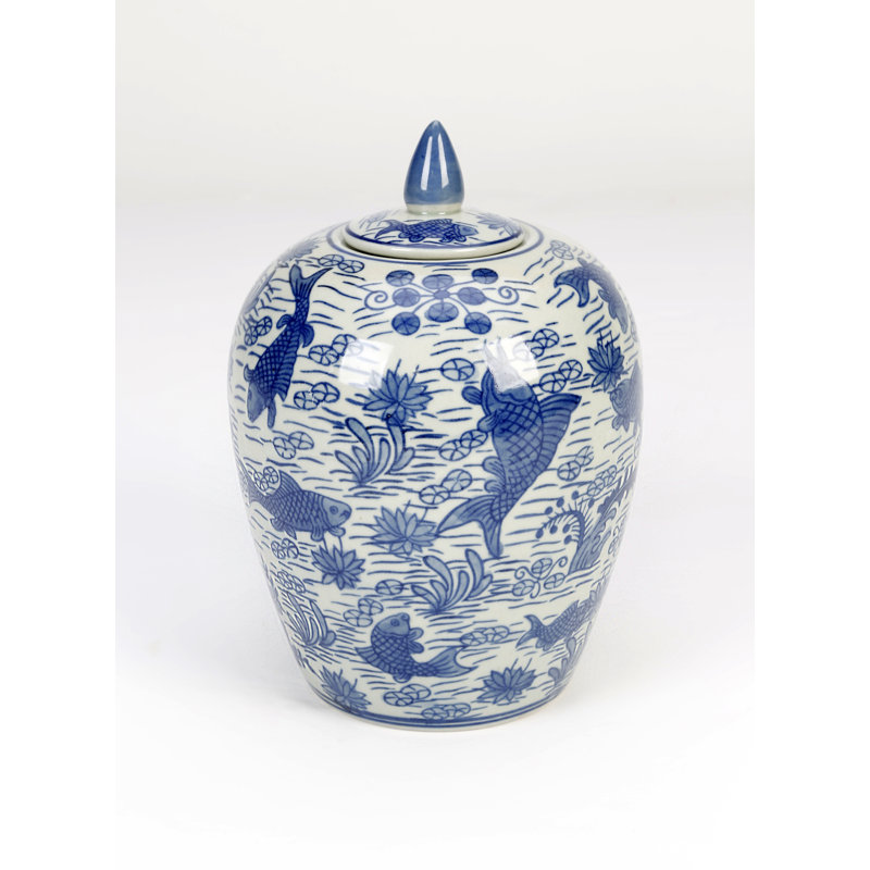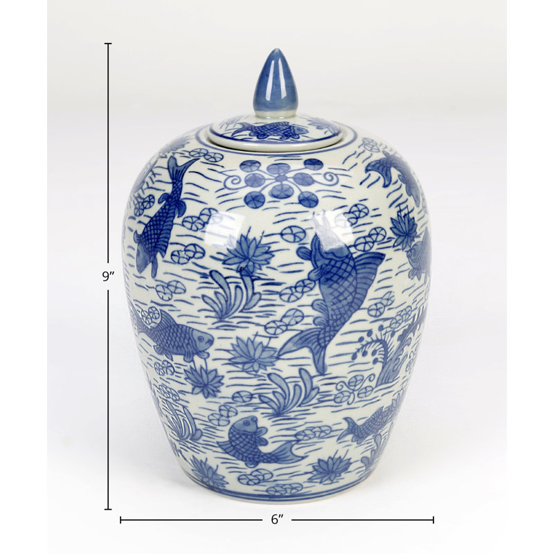 The Bliss Porcelain Ginger Jar deserves a spot in your jar collection courtesy of its classic form and design. It is of porcelain material boasting a bulbous shape with koi in pond design on a classic blue and white background. You can place this in your china cabinets for display and it would be an eye-catching piece. The jar comes with a matching lid.