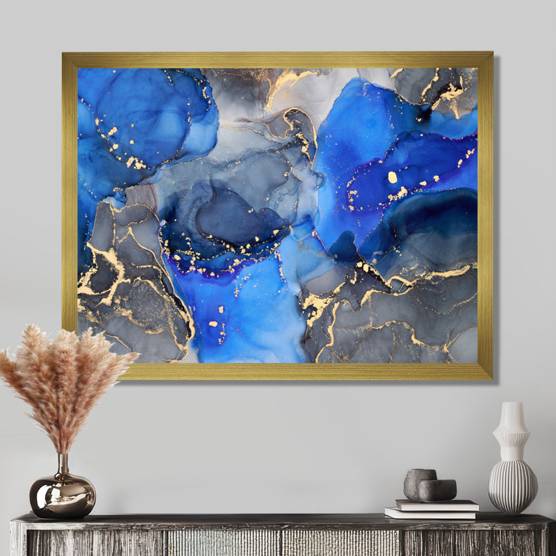 This painting print brings color and movement to your living room, bedroom, or bedroom. Originally an abstract painting, it’s a reproduction printed with premium, crisp inks on cotton-wrapped canvas for a museum-quality look. The design features flowing paint in black, navy, and bright blue, intersecting, with veins of bright gold, giving it a look that’s almost like an agate stone. We love that this wall art comes with mounting hardware, so it’s ready to hang and inspire right out of the box.
