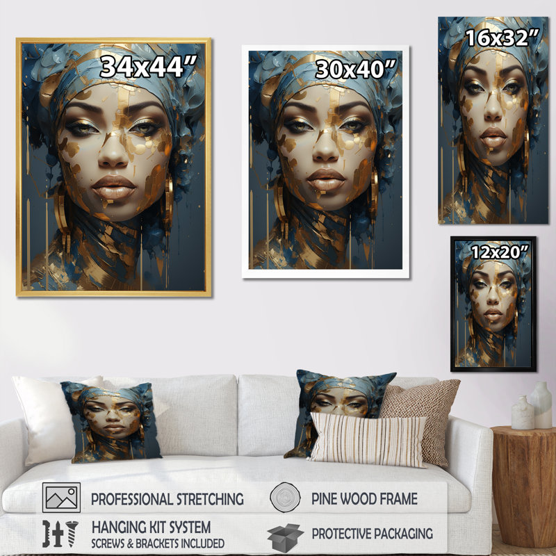Blue And Gold African Woman Portrait – African Art Canvas Art