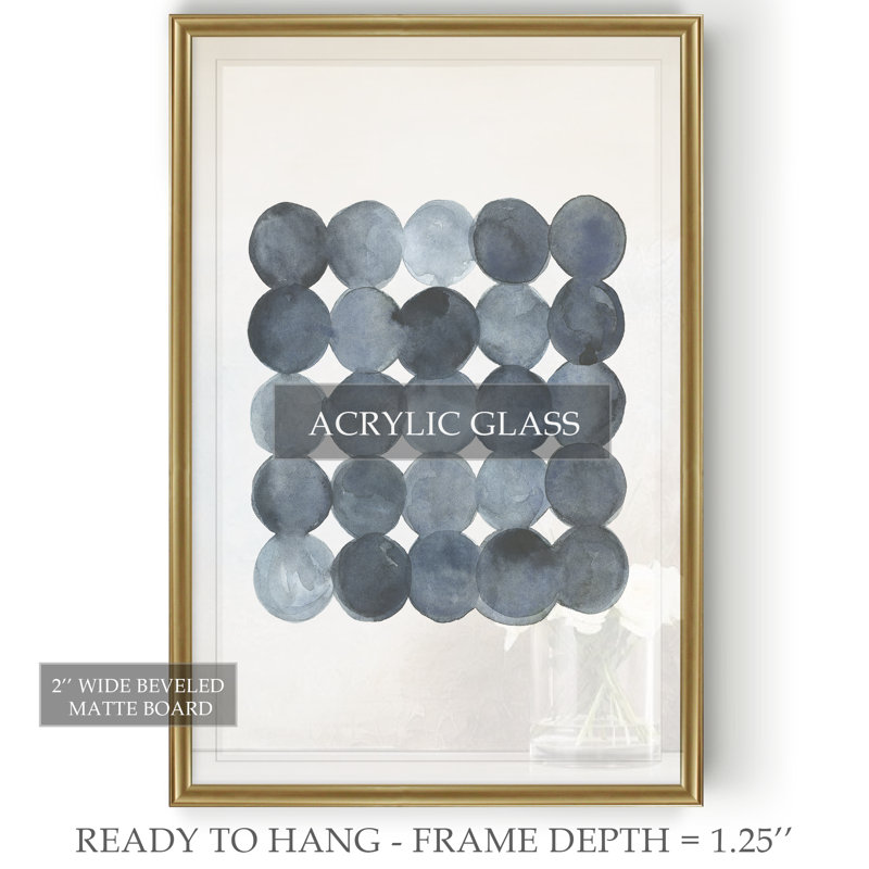 Add an artful look to your walls with this painting print. It features a series of dots stacked on top of one another in light and dark hues of blue against a cream background that freshens up the fee…. Read More.