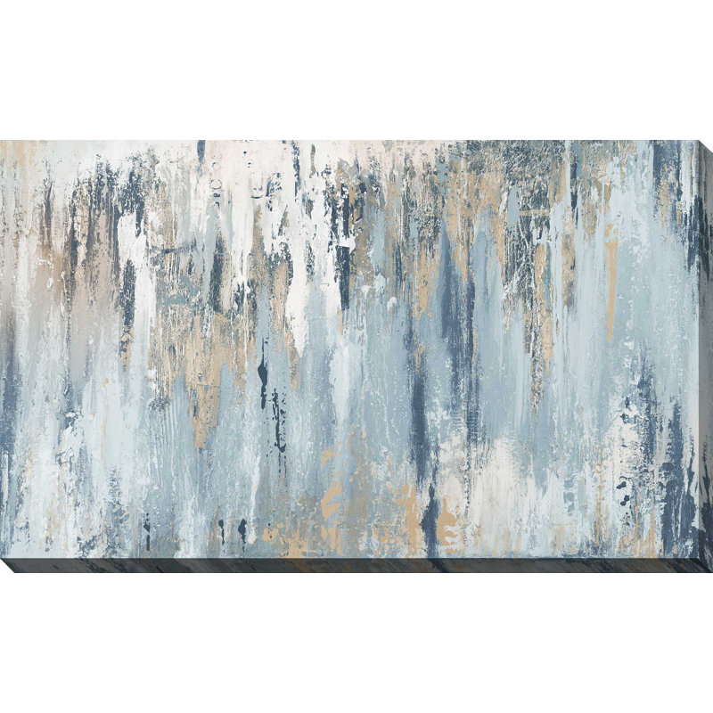 This rectangular painting print features cascading vertical brushstrokes and splatters that bring an abstract feel to any room in your home. Blue and gray hues play with tone and dimension for a look that’s equally modern and industrial. This horizontal acrylic painting is printed on canvas with a variety of size options available, so you can find the best one to suit your space. A sawtooth hanger is affixed to the back, making it a cinch to mount right when it arrives.