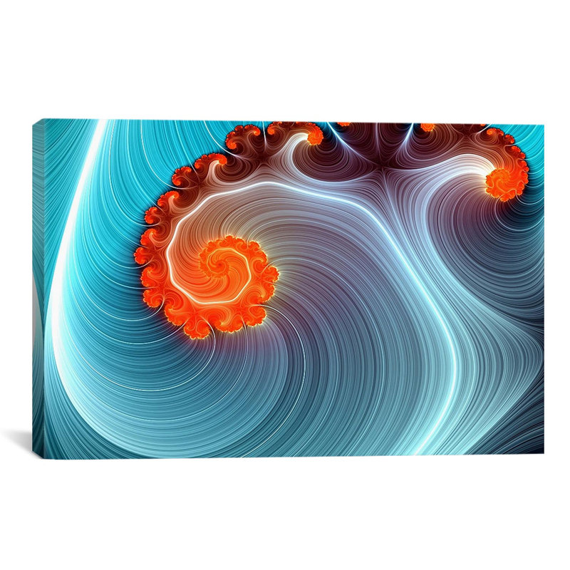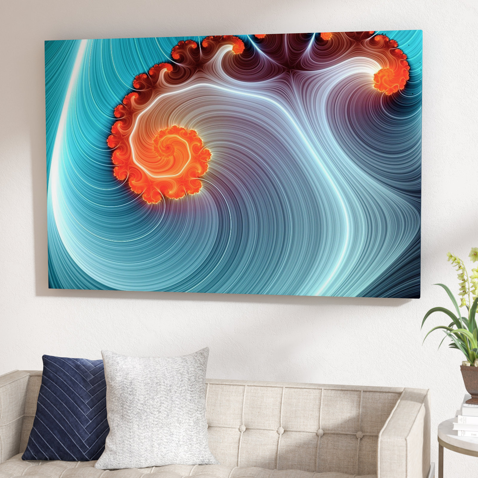 Ready to really make a statement in your space? Whether you want to complete an eclectic aesthetic or transform a simple space, this stunning art piece is the perfect choice to instantly elevate any ensemble. Brimming with bold style and eye-catching appeal, it showcases a swirling graphic design inspired by rushing water and lagoons. The bright blue, orange, and white color palette adds an extra pop of chic flair to this art. Try hanging it on the wall behind your living room sofa for a striking conversation piece and focal point, then complement the color palette by rolling out a soft blue rug, adding a few light orange pillows to your seats.