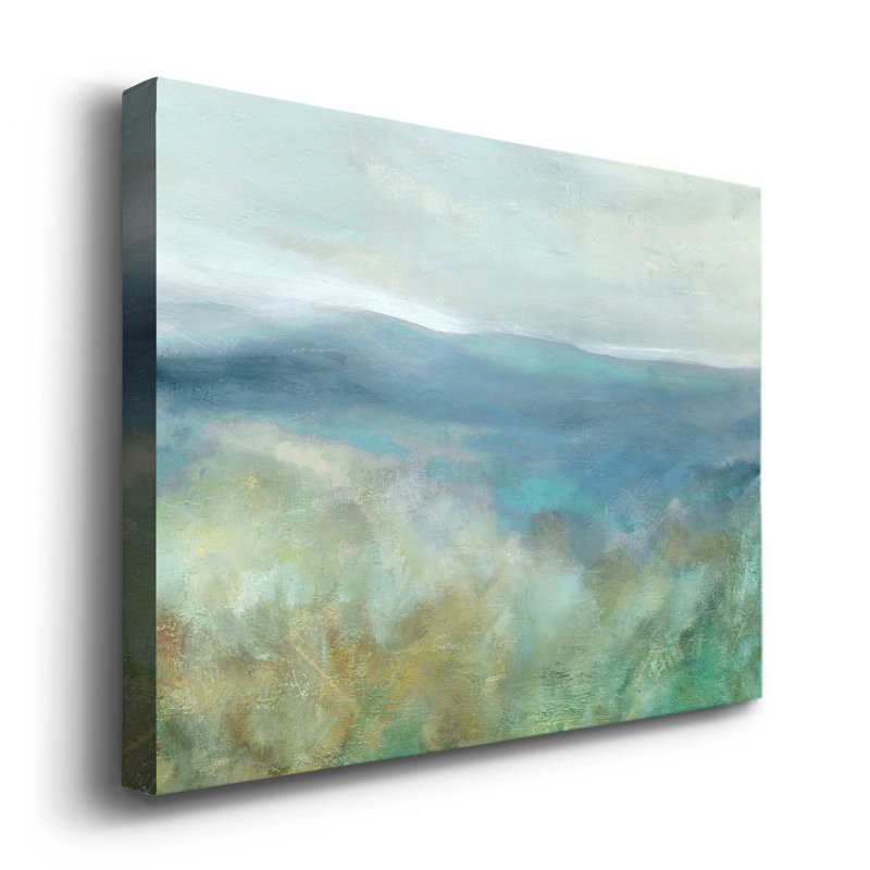 This dreamy horizon landscape offers a window into calming nature from any room in your house. Originally a painting, it’s premium giclee printed on a wrapped cotton blend canvas with a solid wood stretcher frame. The horizontal design, “blue mountain overlook,” features a view of a mountain range in a naturally ethereal palette of greens, blues, and grays. We love that this landscape wall art print comes with mounting hardware, so it’s ready to hang right out of the box.