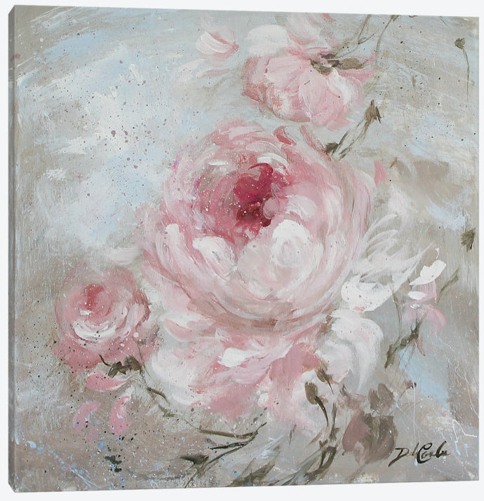 Fun and feminine, this acrylic painting print makes the perfect addition to your living room, bedroom, or hallway decor. It showcases pink flowers in the center rendered with impressionistic brush strokes, and is accented with gray and blue hues for a pastel color palette. This piece is printed in the USA on 100% cotton canvas with anti-fade ink, and wrapped over anti-shrink pine wood bars. Plus, it features two wall hooks on the back, so it’s easy to mount as soon as it arrives. Hand-curated by Kelly Clarkson.