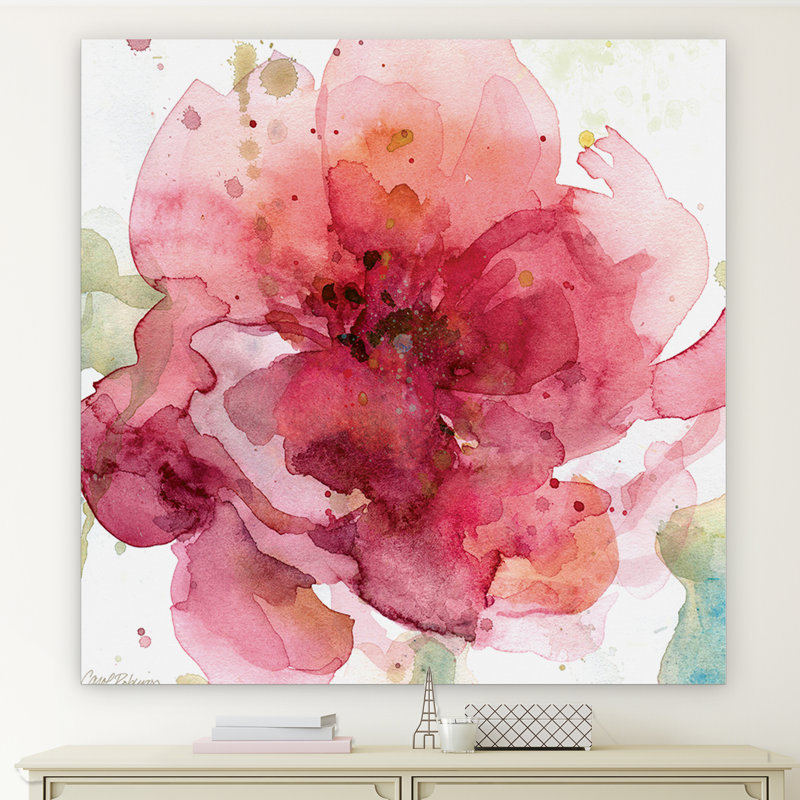 Inspired by the joyous rebirth that comes every Spring, this amazing acrylic painting print showcases a blooming flower in watercolor strokes of pink, magenta, and pale green over white. Made in the USA, this artful image is giclee printed on cotton canvas, then individually hand-stretched and gallery-wrapped over solid wood stretcher bars and comes ready to hang. Mount this flowerful design on the wall of your home office to inspire you throughout the work day, or add it to a wall collage in the living room by hanging it among framed black-and-white photographs, potted succulents perched on wooden floating shelves, and cascading vine plants in glossy ceramic wall planters for a gallery-worthy display.