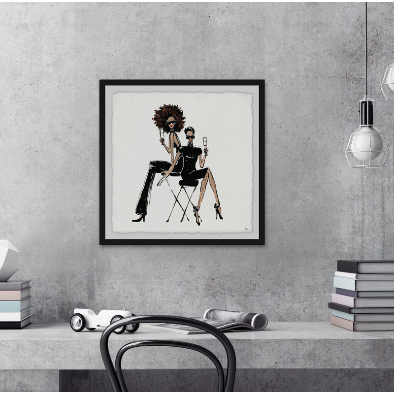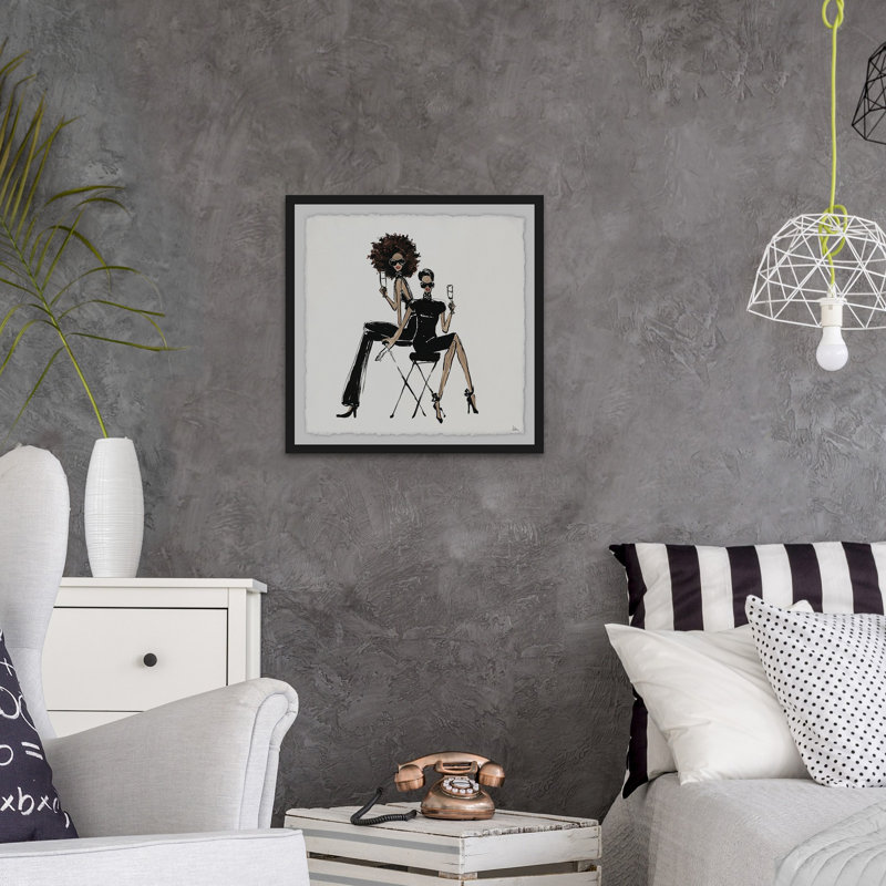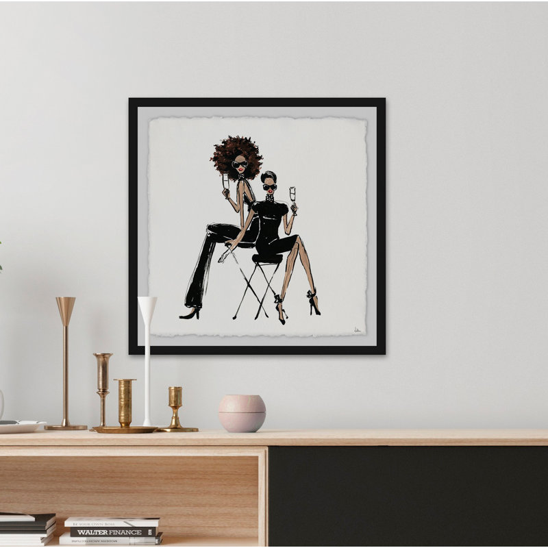 An elegant and mysterious piece of two women having a drink. Watch as these black-clad beauties give off the feeling of sleek style and a well-kept secret. Proudly made in the USA, this piece is printed on high-quality archive paper and professionally hand-framed. With wall-mounting hooks included, this artful accent is ready to hang up as soon as it reaches your front door.