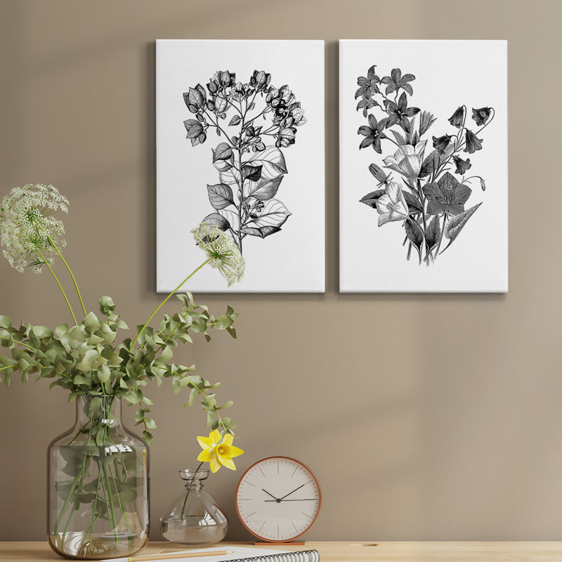 ” Botanical Black And White ” 2 – Pieces