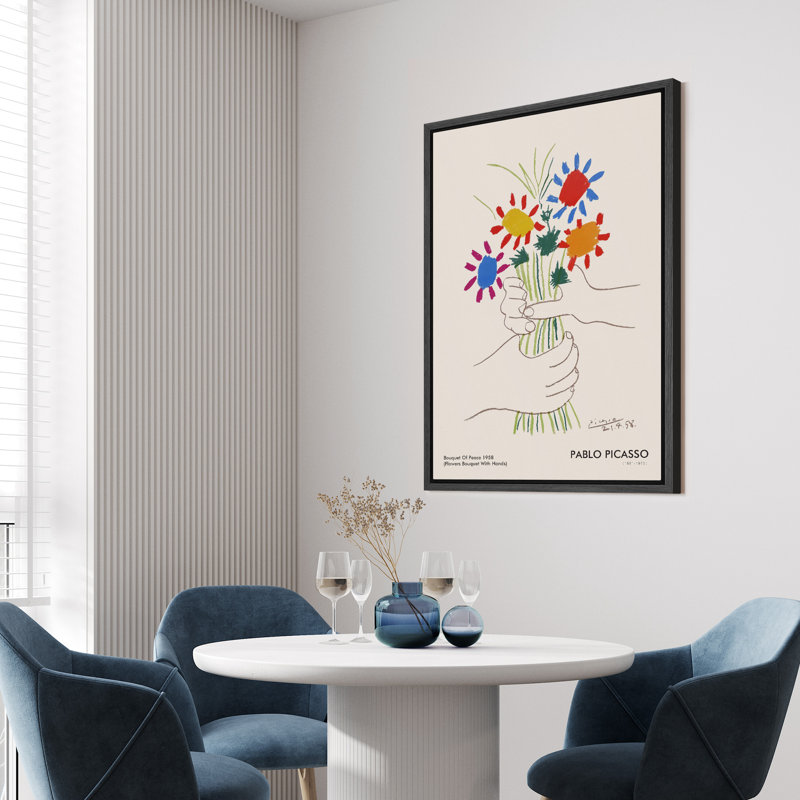 Bouquet of Peace (Flower Bouquet With Hands) Pablo Picasso Floral- Framed Canvas Print Wall Art Work