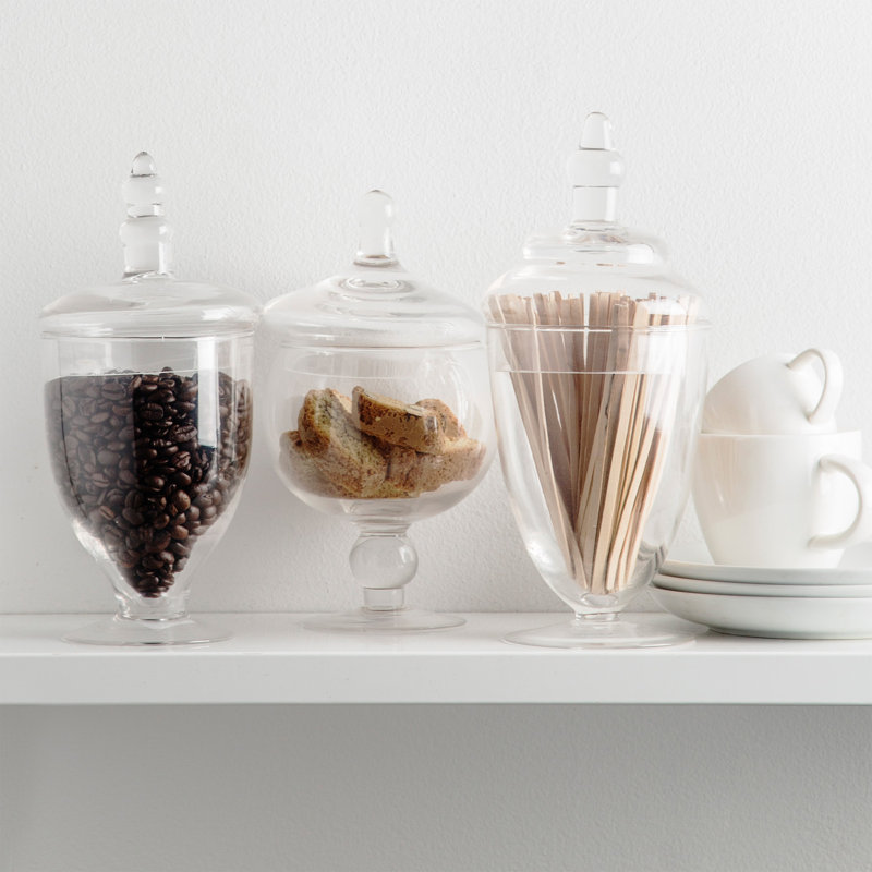 Designed with versatility in mind, these glass apothecary jars with lids are not only great for home organization but also add elegance to special events. Use them as wedding centerpiece displays, candy buffet jars, or as a charming addition to your guest bathroom. Their classic look complements seasonal decor as well€”fill them with ornaments for the holidays, mini pumpkins for fall, or fresh flowers in spring. Easy to clean and endlessly reusable, these jars offer a sustainable and chic alternative to plastic containers.