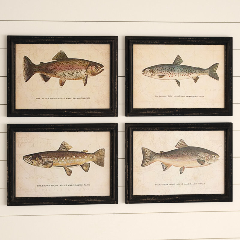 This set of 4 graphic art prints is an easy way to add a little personality to your bare coastal cottage walls. Each keepsake piece depicts a different type of trout and typographic accents underneat…. Read More.