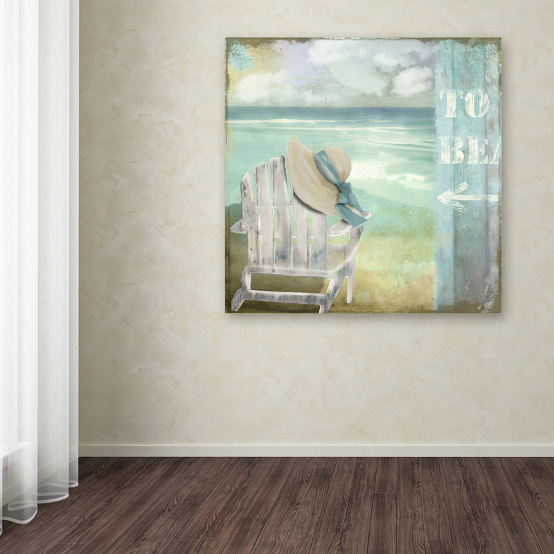 This ready to hang, gallery-wrapped art piece features a wide-brimmed hat on a beach chair at the edge of the ocean. Giclee (jee-clay) is an advanced printmaking process for creating high quality fine…. Read More.